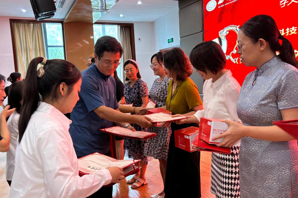 大会的第一项内容为全体起立奏唱国歌。随后,学院党委副书记邢皓越宣读了表彰文件,对2023、2024年度在教育教学、科研工作、学生工作等方面有突出贡献的26名教职工进行表彰和鼓励,学院党政负责人现场为以上人员颁发了荣誉证书和纪念品。大会还对2名从教30年教师进行了表彰,向他们致以感谢和祝福,并发放了纪念品。