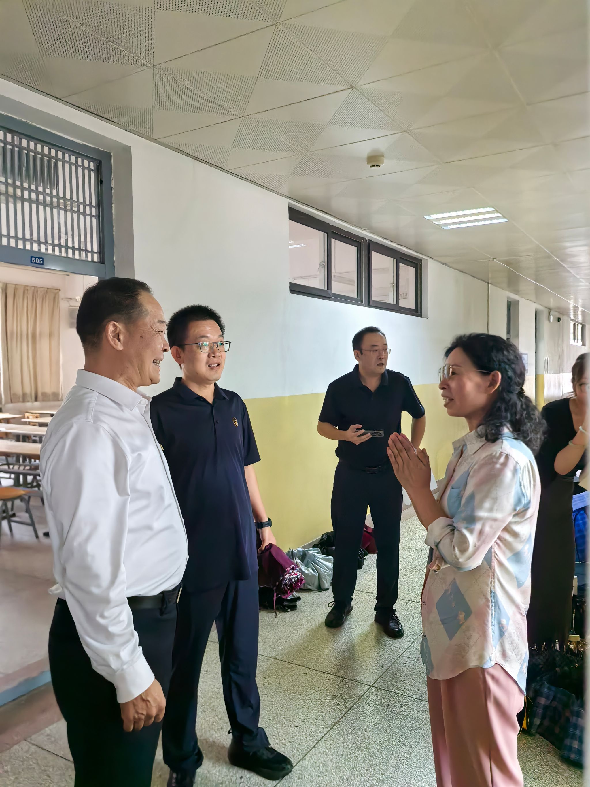 9月10日上午,副校长曹明一行前往16号教学楼,于课间休息时段慰问我院教师代表张芸教授,校国资处处长罗红伟、教师工作部张耿副部长、学院党委书记费秀水,党委副书记邢皓越和学院办公室主任蔡雨庭陪同慰问。